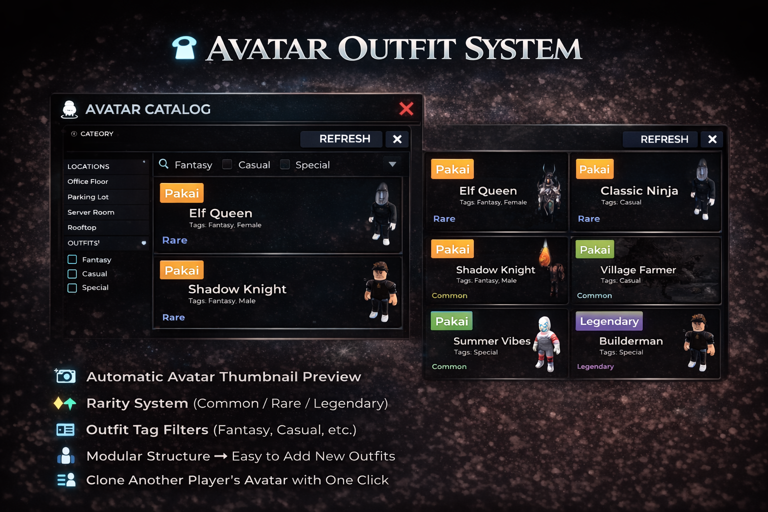 • Supports Bundles, Manual Assets, Saved NPCs, and copying avatars from UserId