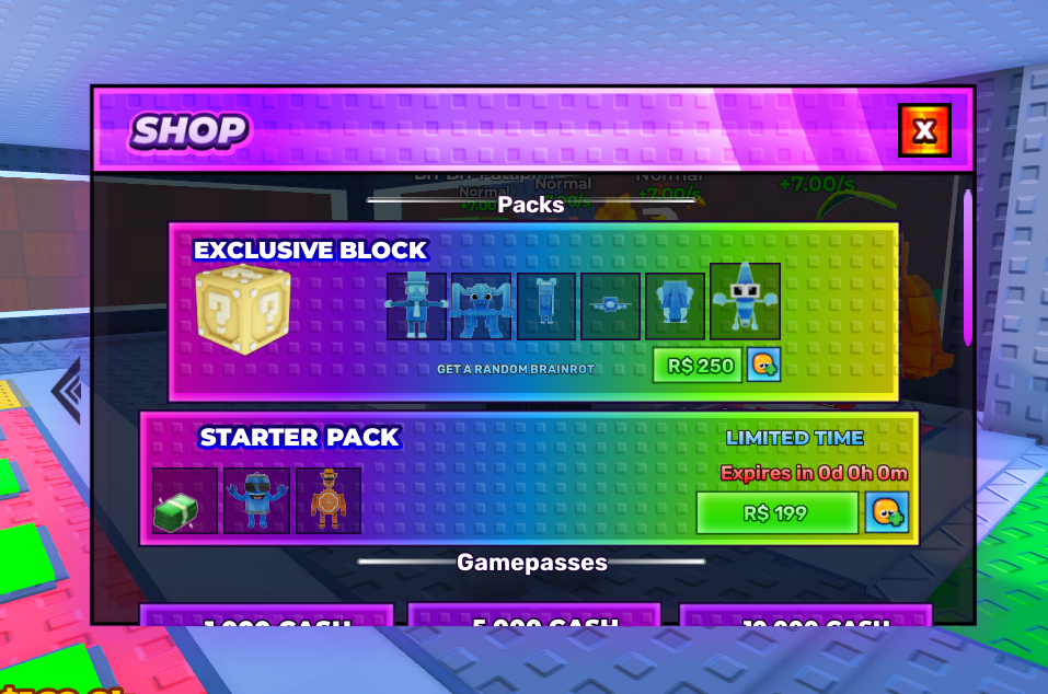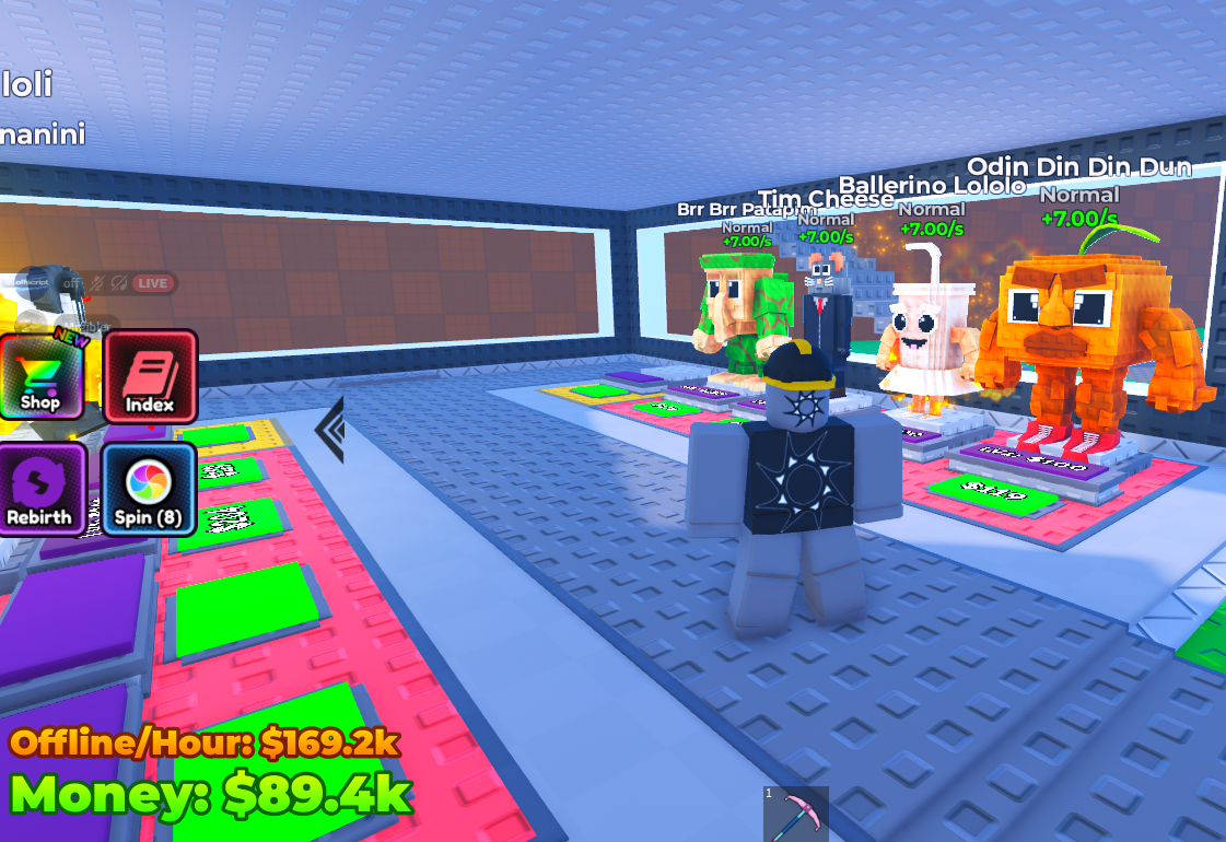 Income scales based on brainrot tier, upgrades, rebirths, and time.