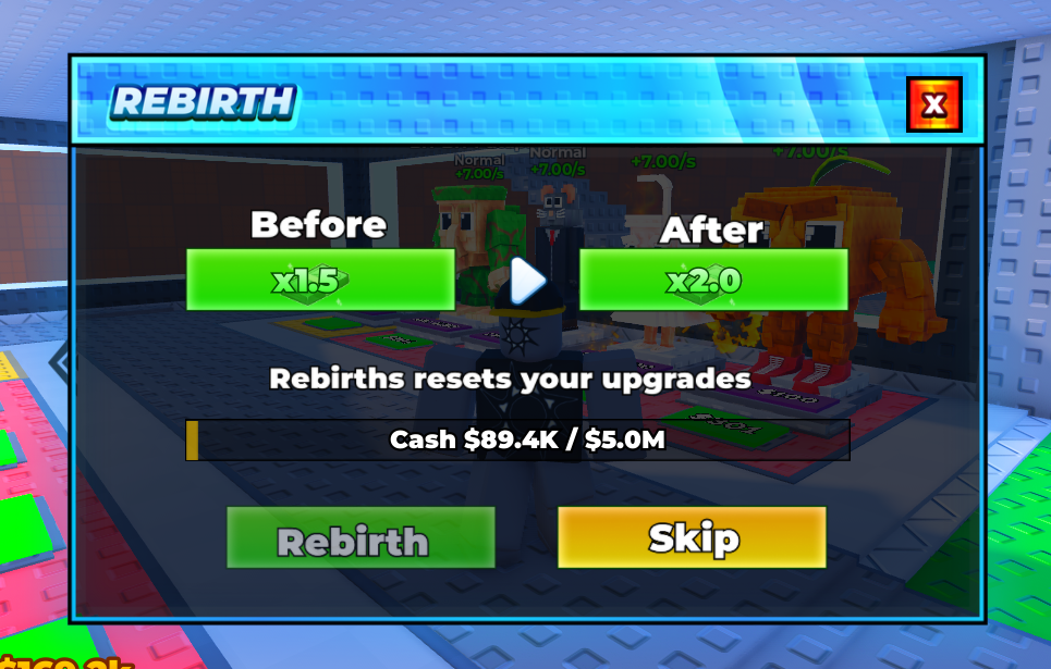 Prestige loop that resets progress in exchange for permanent multiplier bonuses.
